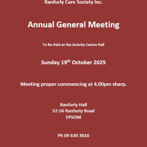 RANFURLY CARE SOCIETY 2025 - ANNUAL GENERAL MEETING