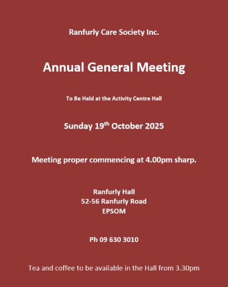 Ranfurly Care Society 2025 Annual General Meeting